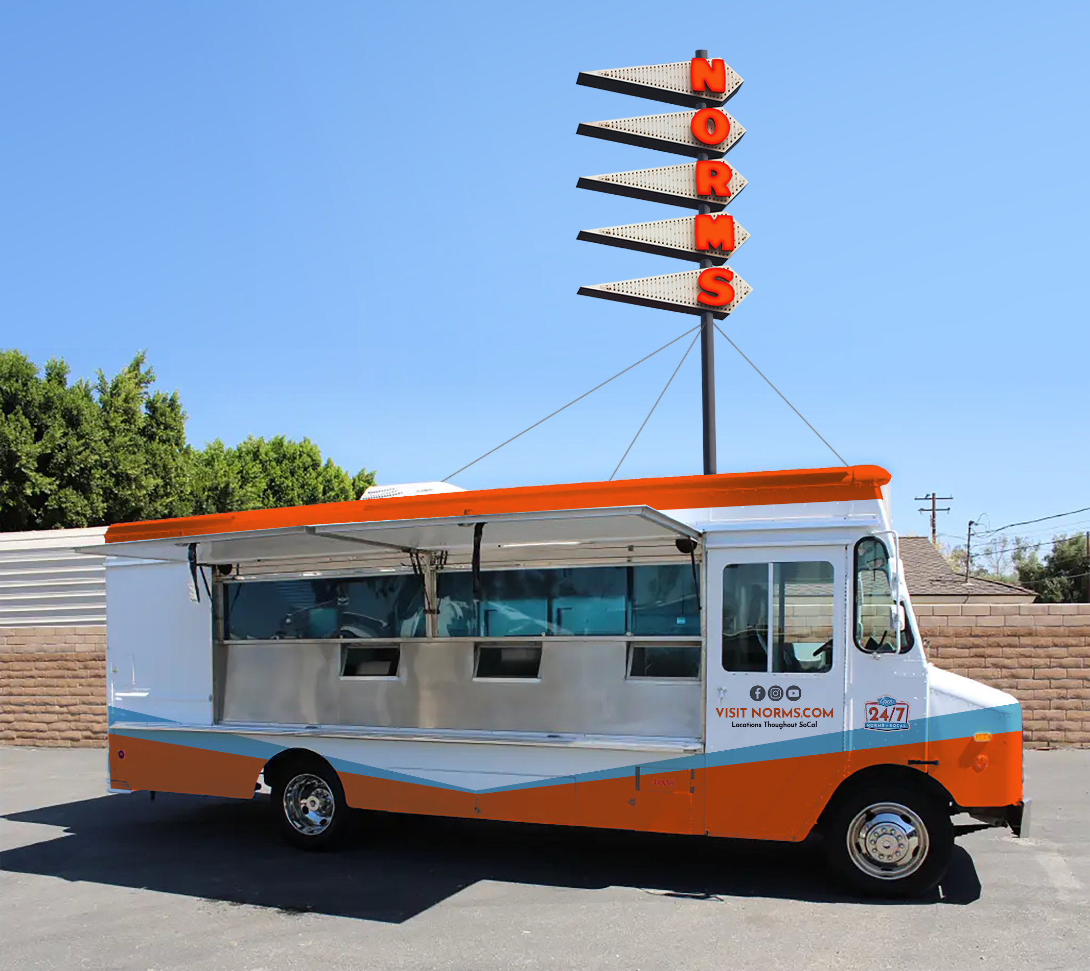 Below are the digital ads that launched the campaign where we featured the sign placed in transit and high traffic areas. We matched message on social by create “Look for Signs” campaign featuring our actual locations first and then mini NORMS illuminated signs sprinkled around cities where our restaurants are located. We also deployed our mobile catering truck to appear at concerts, pro / college games where we featured the same illuminated sign to attack attention.