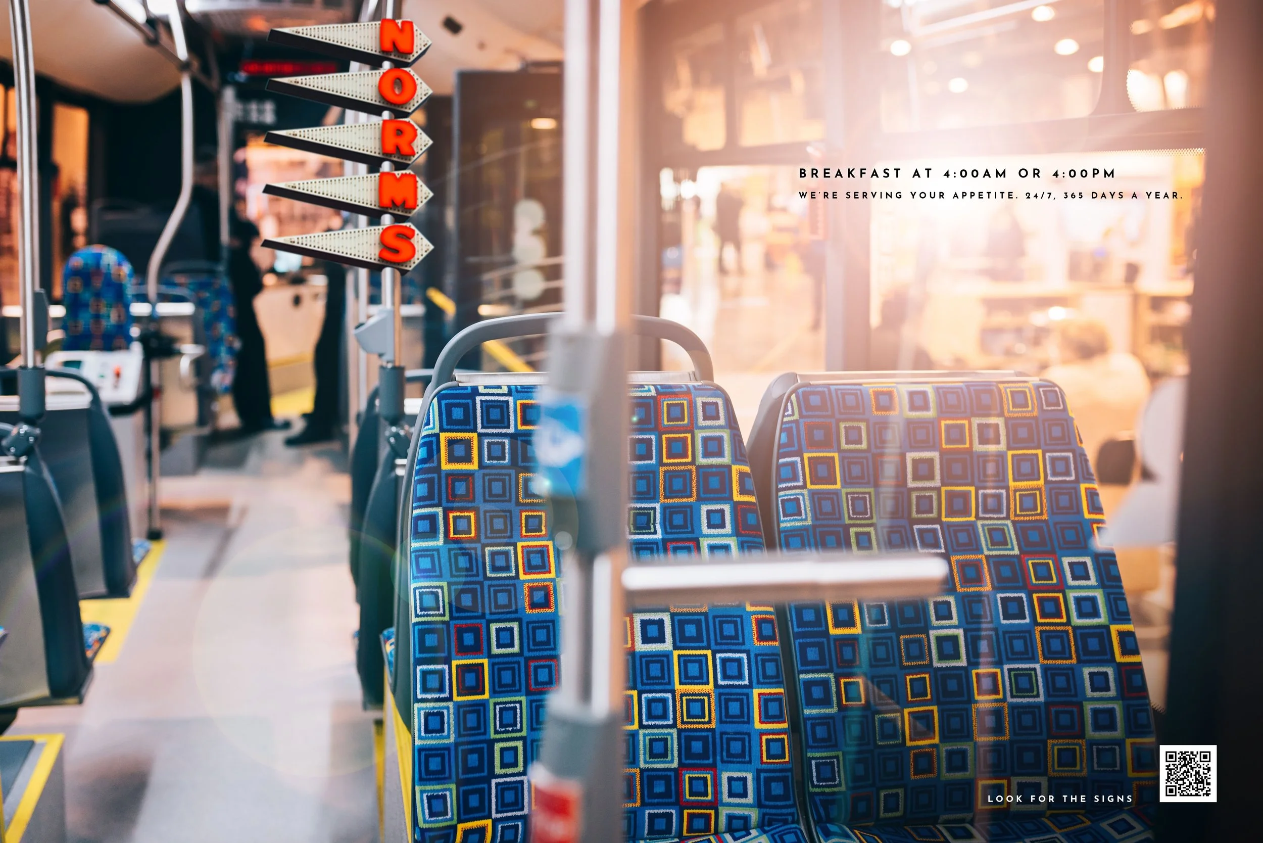 Look for the signs campaign including digital / print ads, rewards app, and updated menu design that all focused on the iconic NORMS brand signage. We created wild postings and miniature signs with QR codes and discount coupons to anyone that investigated the NORMS signage ads. We also offered additional rewards for people that spread the NORMS sign sightings on social.